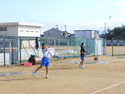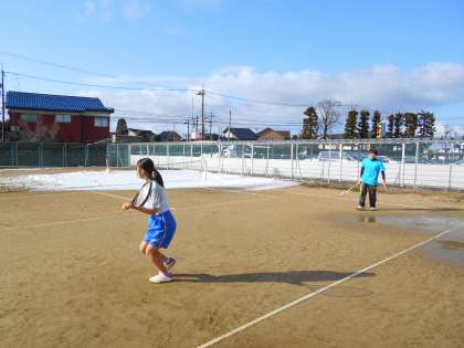 2月11日(土)の部活動・その4 公開日 2023/02/11 更新日 2023/02/11 部活動 2月11日(土) 9:30 ソフトテニス部は、雪が残るコートも何のその、打ち合いをしています。 お天気に恵まれて久々のコート練習ができ、とても嬉しそうです。