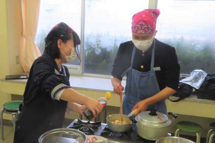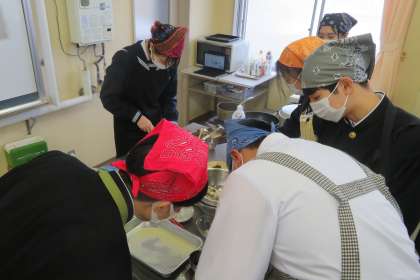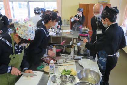 途中、担任の小沼先生が、調理のようすを見に来ました。(写真:中)