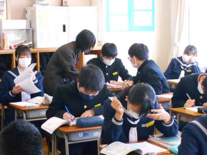 英語では、定期考査のポイントを学習した後、それぞれの課題に取り組んでいます。