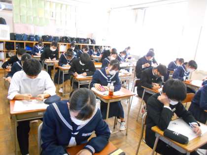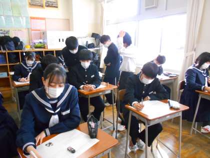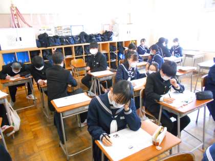 3年・授業風景 公開日 2023/02/16 更新日 2023/02/16 3学年 2月16日(木) 1限 3年生は、「3年間を振り返って」の作文を書いています。 1年生の頃からの思い出を語り合いながら楽しく取り組んでいます。 (写真 上:3年3組 中:3年4組 下:3年5組)