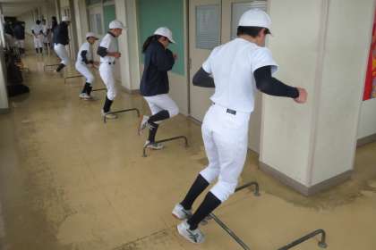 2月25日(土)の部活動・その1 公開日 2023/02/25 更新日 2023/02/25 部活動 2月25日(土) 10:30 気温は3度、天気はくもり。 (このあと、天気は下り坂になりそうです。) グラウンドコンディションがよくないので、野球部は校舎内でトレーニングをしていました。 かけ声をかけながら、黙々と練習しています!