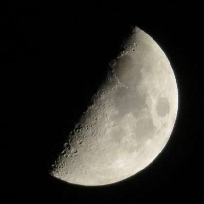 まず、天頂付近に半月(上弦の月)が見えます。(写真)