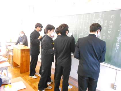 「未然形は・・・連用形は・・・。」考えながら板書しています。