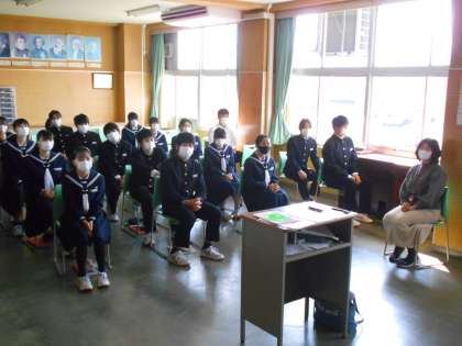 音楽では、卒業式で歌う「旅立ちの日に」が作られた背景についてのドキュメンタリーを視聴しています。