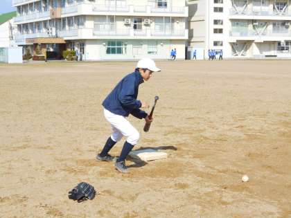 野球部は、ローテーションしながらバント練習をしています。