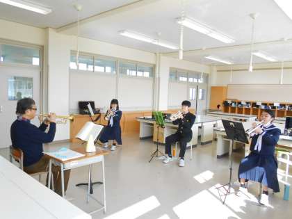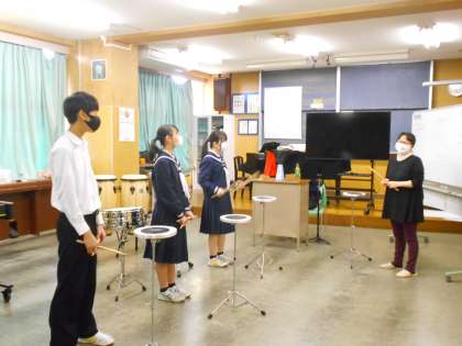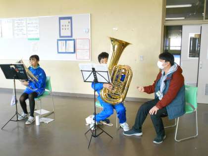 3月4日(土)の部活動・その4 公開日 2023/03/04 更新日 2023/03/04 部活動 3月4日(土) 9:30 吹奏楽部は、講師の先生に来ていただいて、パート練習をしています。 先生方のアドバイスをひとつひとつうなづきながら聞いています。