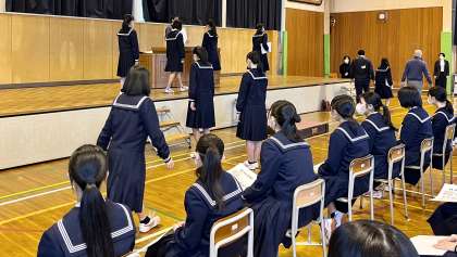 3年・卒業式に向けて 公開日 2023/03/13 更新日 2023/03/13 3学年 3月13日(月) 1限 いよいよ卒業式を明後日に控え、3年生は1限から体育館で授与式の練習をしていました。 少しずつピリッとした緊張感を感じます。