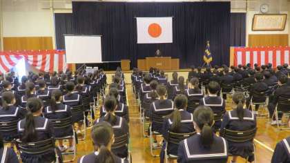 3年・学年集会のあと、「同窓会入会式」を行いました。