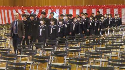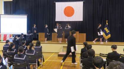 3月14日(火) 4限 「3年・修了式」のあと「卒業式予行」を行いました。