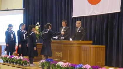 「第76回 卒業証書授与式」・その3 公開日 2023/03/15 更新日 2023/03/15 山室中学校のページ 3月15日(水) 卒業証書授与 卒業証書授与では、ほんの一瞬ですが、校長先生と目と目で会話しているようです!
