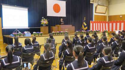 「第76回 卒業証書授与式」・その5 公開日 2023/03/15 更新日 2023/03/15 山室中学校のページ 3月15日(水) 式辞 式辞では、校長先生から「ワクワクした気持ちで挑戦することの大切さ」の話がありました。