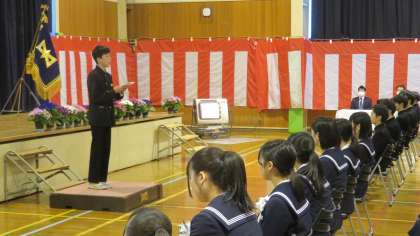 在校生を代表して、山谷くんが送辞を述べました。(写真:上)