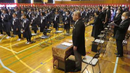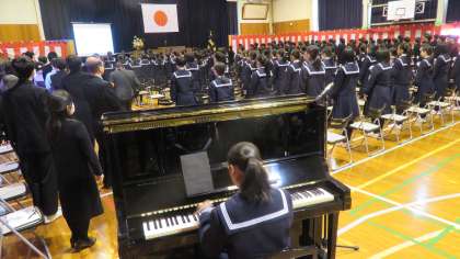 3月15日(水) 校歌斉唱 最後に全員で、校歌を斉唱しました。