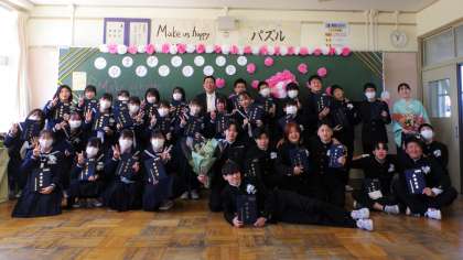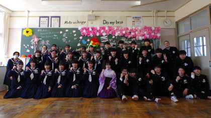 「第76回 卒業証書授与式」・その13 公開日 2023/03/15 更新日 2023/03/15 山室中学校のページ 3月15日(水) 10:40 最後にみんなで記念写真! 最高の笑顔がはじけています。 (写真 上:3年4組 中:3年5組 下:3年6組)