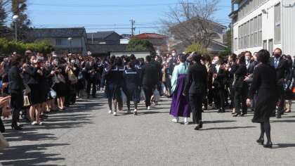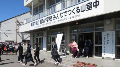 「第76回 卒業証書授与式」・その14 公開日 2023/03/15 更新日 2023/03/15 山室中学校のページ 3月15日(水) 11:10 歓送 卒業生は、堂々と清々しい笑顔で、山室中学校を巣立っていきました。 「第76回 卒業証書授与式」を無事終えることができました。 厳粛な中、温かで素晴らしい卒業式でした。 一人一人のこれからに幸多かれと願っています! 参列いただいた来賓、保護者の皆様、ありがとうございました!