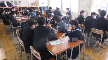2年2組の学活は、コンセンサスゲーム「砂漠で遭難したら!?」をしていました。