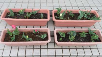 生徒玄関前のチューリップがどんどん花を咲かせそうです。