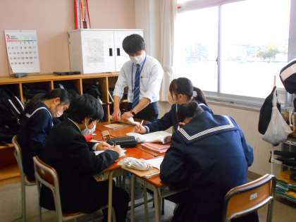 分からないところはグループで教え合っています。
