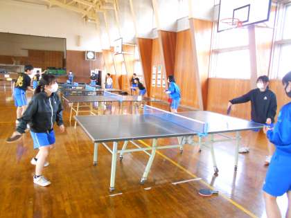 3月31日(金) 10:30 卓球部は、シングルスの試合を相手を代えながら、たくさん試合をしています。
