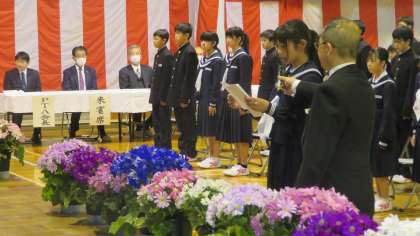 入学式特集・その7 公開日 2023/04/07 更新日 2023/04/07 1学年 4月7日(金) 「誓いのことば」 「歓迎のことば」を受け、新入生を代表して、谷浦さんが「誓いのことば」を述べました。