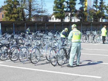 自転車点検 公開日 2023/04/10 更新日 2023/04/10 山室中学校のページ 4月10日(月) 9:20 富山南交通安全協会の皆さんの協力を得て、1年生の自転車点検が行われました。 新しい自転車が多く、安全に乗れる自転車ばかりですが、サドルの調整など乗る人に合わせて調整していくことが大切だとお話をいただきました。