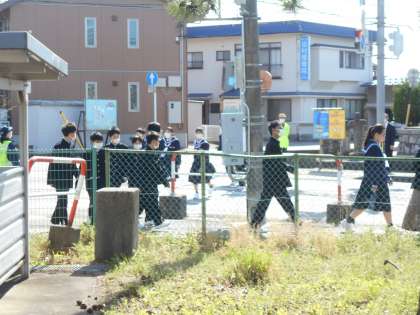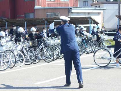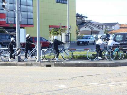 交通安全教室・実地訓練・その1 公開日 2023/04/10 更新日 2023/04/10 1学年 4月10日(月) 6限 6限は、1年生対象の実地訓練を行いました。 自転車通学生は、午前中に点検を受け終えた自転車の状態を確認してから、実際に決められたコースを通ってみました。 徒歩通学生も安全に気を配りながら、学校周辺の道路を歩いてみました。