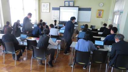 先生方は、今年度から導入するクラウド教材の研修会を行いました。