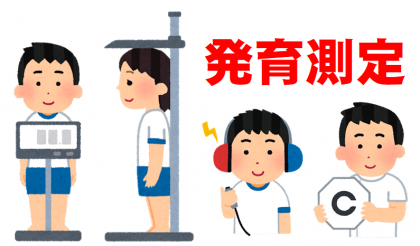 明日、発育測定(身長、体重)、視力検査、聴力検査を行います。