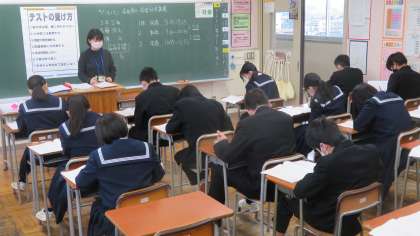 (1限:国語、2限:数学、3限:英語、4限:質問紙)
