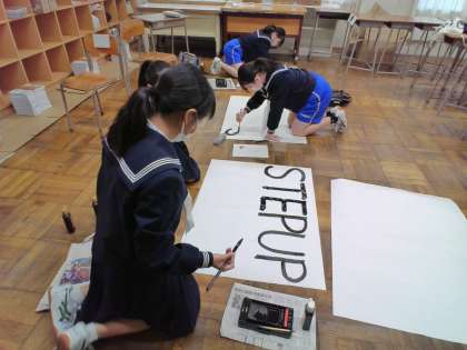 有志のメンバーで学年目標を書きました。(写真:下)