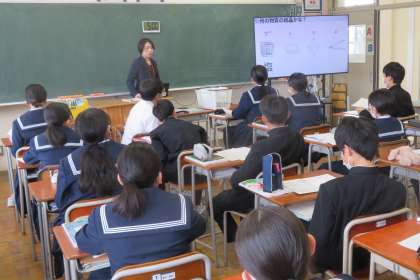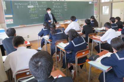 2年・授業風景 公開日 2023/04/19 更新日 2023/04/19 2学年 4月19日(水) 1限 爽やかな天気で、学習するには最適な環境です! (写真 上:2年1組 国語「アイスプラネット」) (写真 中:2年3組 理科「授業びらき」) (写真 下:2年5組 数学「単項式と多項式」)