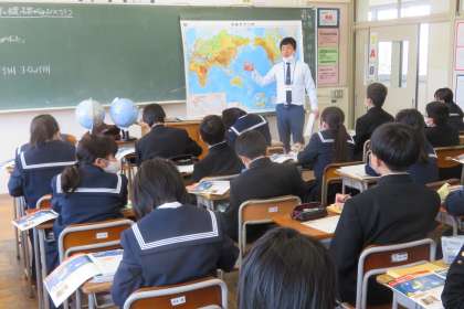 (写真 下:1年3組 社会「大陸と海洋の位置」)