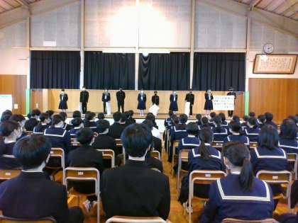 次に、学年目標と各クラスの学級目標の発表があり、最後に櫻井先生から「人から愛される人、権利と責任」についての話を聞きました。