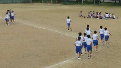 3年4,5組の体育は、グラウンドで、陸上競技をしていました。