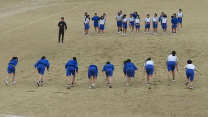 男子は長距離走(写真:上、中)、女子は短距離走のクラウチングスタートの練習(写真:下)をしました。