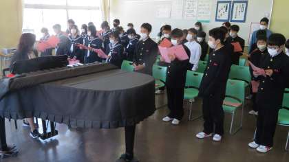 1年2組 音楽(第2音楽室) 「山室中学校の校歌を覚えよう」