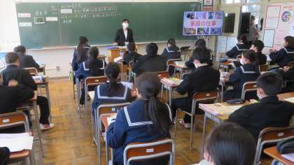 4月22日(土) 5限 1年4組 家庭科(1年4組) 「私たちの食生活」
