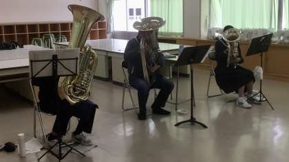4月23日(日)の部活動・その3 公開日 2023/04/23 更新日 2023/04/23 部活動 4月23日(日) 10:00 吹奏楽部は、コーチをお招きして、パート毎に練習しました。 この機会に、たくさん習得することができました。