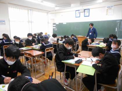1年・授業風景・その2 公開日 2023/04/26 更新日 2023/04/26 1学年 4月26日(水) 5限 お天気は相変わらずですが、生徒たちは明るく授業に参加しています。 中学校での学習にも慣れてきた様子です。 (写真 上:1年2組 英語「自分について伝えよう」) (写真 中:1年4組 理科「身近な生物」) (写真 下:1年5組 国語「シンシュン」)