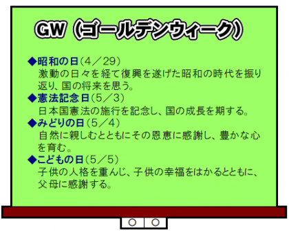今日から、GW「ゴールデンウィーク」です!