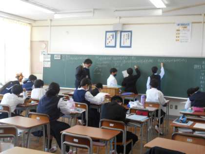 (写真 中、下:1年2組 数学「加法の交換法則、結合法則」)