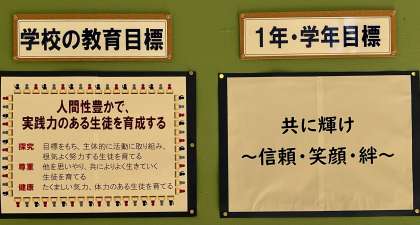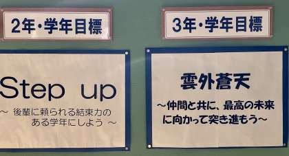 目標掲示板が整う! 公開日 2023/05/02 更新日 2023/05/02 山室中学校のページ 5月2日(火) 10:00 B階段1階踊り場の目標掲示板が整いました。(写真:中) どの学年も素敵な学年目標ですね!