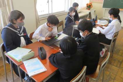 1年・授業風景 公開日 2023/05/02 更新日 2023/05/02 1学年 5月2日(火) 1限 明日からGW後半(5連休)に入りますが、落ち着いて授業に臨んでいます。 (写真 上:1年2組 理科「生物の分類」) (写真 中:1年3組 英語「できることをたずねよう」) (写真 下:1年4組 家庭科「何のために食事をするの?」)