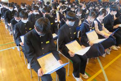 生徒総会・その2 公開日 2023/05/02 更新日 2023/05/02 生徒会活動 5月2日(火) 5,6限 執行部、専門委員長の活動計画を真剣に聞いています。 (写真 上:1年生 中:2年生 下:3年生)