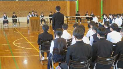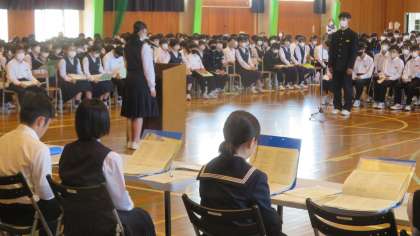 生徒総会・その3 公開日 2023/05/02 更新日 2023/05/02 生徒会活動 5月2日(火) 5,6限 質疑応答では、たくさんの意見が出ました。(写真) 山中生の生徒会に対する関心の高さを感じました。 最後の校長先生のお話にもありましたが、「人を愛す」「考動」を踏まえながら、『自治』の力を培ってほしいと思います。