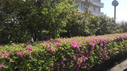 職員駐車場のツツジが見頃を迎えています。