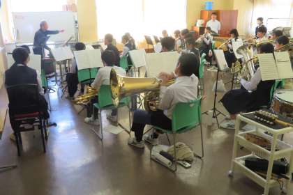 5月5日(金)の部活動・その2 公開日 2023/05/05 更新日 2023/05/05 部活動 5月5日(金) 10:00 吹奏楽部は、東京からコーチの先生をお招きして、合奏練習をしていました。 アドバイスを聞く姿勢も真剣です!
