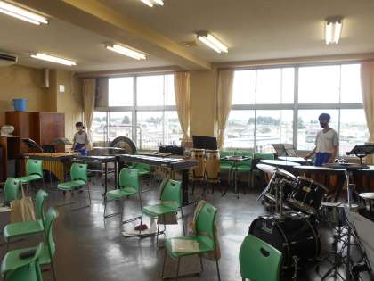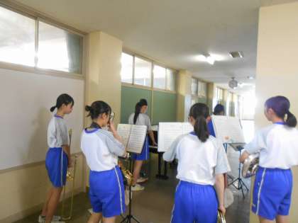 吹奏楽部が朝から活動しています。