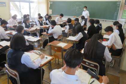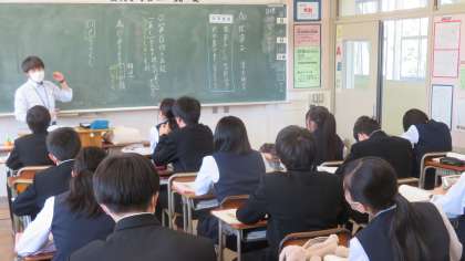 2年・授業風景 公開日 2023/05/10 更新日 2023/05/10 2学年 5月10日(水) 1限 穏やかな空が広がり、学習日和です。 (写真 上:2年3組 理科「化合」) (写真 中:2年4組 国語「枕草子」) (写真 下:2年5組 道徳「私のせいじゃない」)