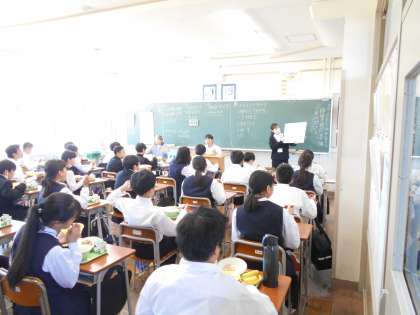 1年・食に関する指導 公開日 2023/05/11 更新日 2023/05/11 1学年 5月11日(木) 12:40 1年1組は、給食時に、南給食センターより栄養士の先生にお越しいただき、食に関する話をしていただきました。 中学生に必要な栄養素や、中学校になると食器の大きさが小学校より一回り大きくなり、食べるために必要な量も変わってくることを知りました。